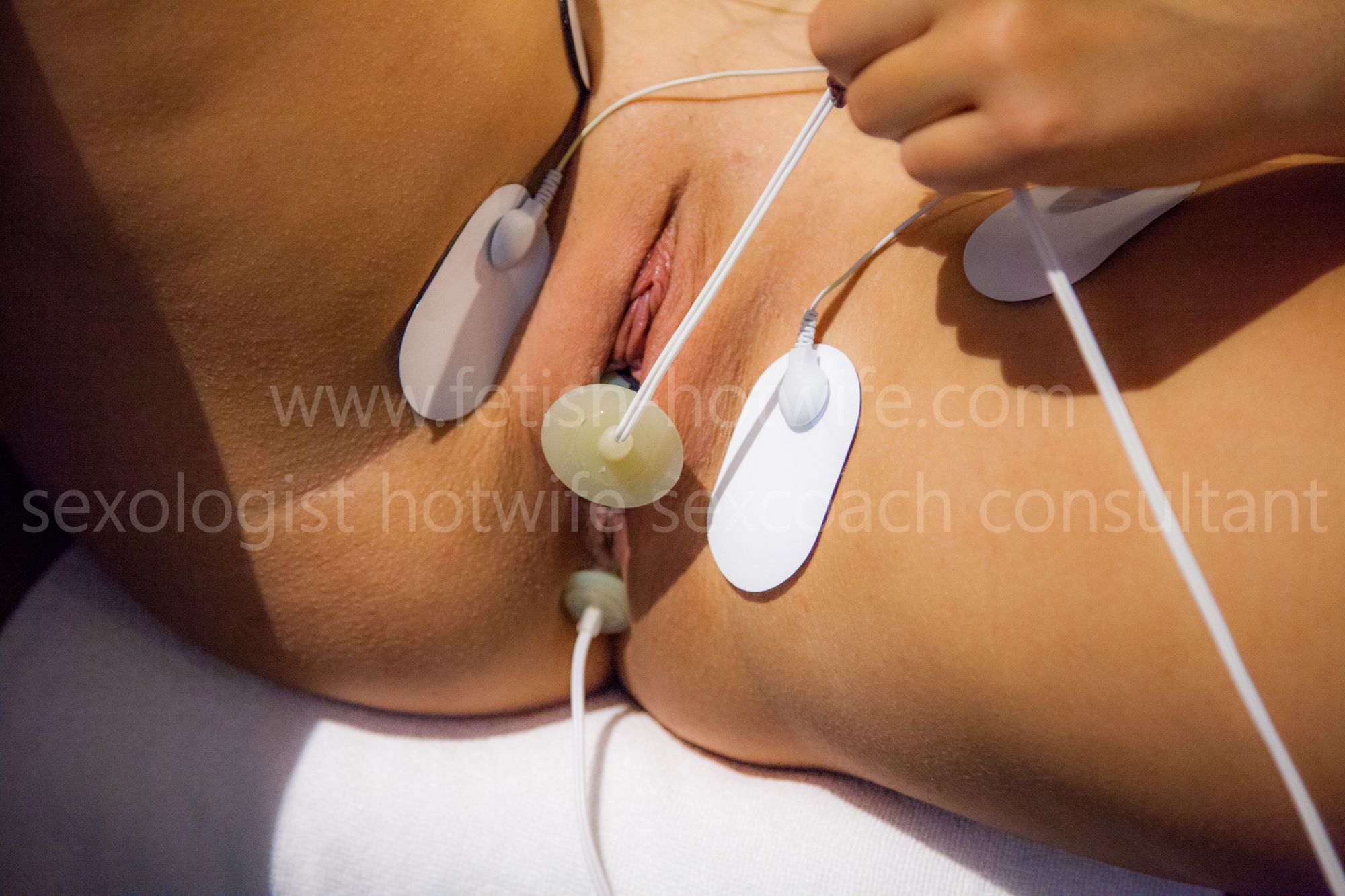 electrotherapy is ... painful, pleasant, effective. recommended to every girl. turns you into a real whore. makes your body fit, your genitalia super-sensitive, your holes wet. electrical impulses penetrate my nipples, clitoris, vagina and anus. I usually use patch electrodes on the chest, pubis and buttocks. and into the vagina and anus I introduce two large bipolar electrodes for deeper muscle stimulation.